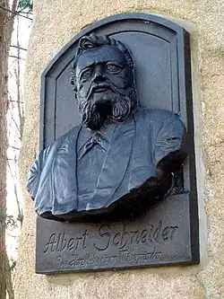 Albert Schneider wurde 1833 als Sohn des Pfarrers in Trautenstein geboren. Er war von 1873 bis 1886 Bahndirektor in Blankenburg (Harz), bis 1892 Vorstand der Halberstadt-Blankenburger Eisenbahn (HBE) und ab 1893 Vorsitzender des Aufsichtsrats. Als Verantwortlicher für den Bau der Harzbahn zwischen Blankenburg und Elbingerode (Harz) setzte er den Einsatz einer Normalspur- statt einer Schmalspurbahn durch, um die sonst notwendigen Umladearbeiten in Blankenburg zu vermeiden. In Zusammenarbeit mit dem Erbauer der Schweizer Rigibahn entwarf er eine hier weltweit erstmals eingesetzte Mischform aus Zahnrad- und Adhäsionsbetrieb, die die Überwindung der Steigungen bis zu 6,1 % ermöglichte.