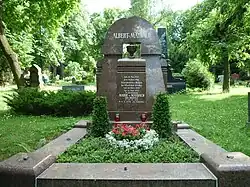 Albert von Maybach starb am 21. Januar 1904 an einem Schlaganfall.[3] Beigesetzt wurde er auf dem Alten St.-Matthäus-Kirchhof in (Berlin-)Schöneberg, das Grabmal ist erhalten. Hier befand sich auch die Grabstätte seiner Tochter Helene und deren Ehemanns Robert Hausmann, die jedoch eingeebnet wurde. Am Grabmal Maybach gibt es eine Erinnerungs-Inschrift für seine nicht hier beigesetzte Ehefrau Marie geb. Brefeld (1831–1886). Sein Grab war von 1987 bis 2009 als Ehrengrab der Stadt Berlin gewidmet.