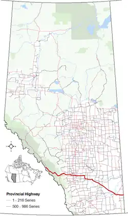 | Straßenende: | Walsh (49° 57′ 17″ N, 110° 0′ 19″ W) | ||||||||||||||||||||||||||||||||||||||||||||||||||||||||||||||||||||||||||||||||||||||||||||||||||||||||||||||||||||||||||||||||||||||||||||||||||||||||||||