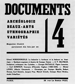 Seit 1928 datieren Bekanntschaften mit Künstlern und Schriftstellern, wie zum Beispiel Louis Aragon, Alexander Calder, Jean Cocteau, Max Ernst, Michel Leiris, Joan Miró und Jacques Prévert. Leiris veröffentlichte 1929 in der neu gegründeten surrealistischen Zeitschrift Documents in der vierten Ausgabe eine erste Würdigung von Giacomettis Arbeiten. Zusammen mit Joan Miró und Hans Arp war Giacometti 1930 an der Gruppenausstellung in Pierre Loebs Galerie Pierre vertreten, wo André Breton Giacomettis Kunstobjekt, die Plastik Boule suspendue (Schwebende Kugel), sah und kaufte. Bei einem anschliessenden Besuch in Giacomettis Atelier in der rue Hippolyte-Maindron konnte Breton den Künstler dazu bewegen, sich seiner Surrealistengruppe anzuschliessen.[26] 1933 veröffentlichte Giacometti Gedichte in Le Surréalisme au service de la révolution sowie einen surrealistisch verfassten Text über seine Kindheit, Hier, sables mouvants (Gestern, Flugsand). Im selben Jahr erlernte er in der Werkstatt des Briten Stanley William Hayter, dem «Atelier 17», die Techniken des Radierens und Kupferstechens; 1933 versah er das Buch des surrealistischen Schriftstellers René Crevel Les Pieds dans le plat mit einer Illustration, gefolgt von vier Kupferstichen zu Bretons L’Air de l’eau 1934.