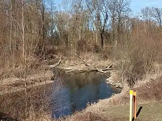 ![]() renaturierter Abschnitt mit Strömungslenker und Totholz | ||