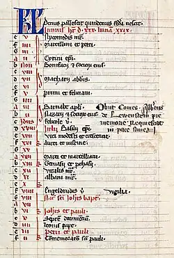 Kalenderblatt Juni, aus dem Psalter der Anna von Bolanden, mit Todesvermerk Albrechts von Löwenstein-Schenkenberg