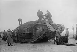 Erstmals setzten die Alliierten Tanks am 15. September 1916 bei Combles, Flers und Courcelette (in der Sommeschlacht) im Rahmen eines Angriffs der II., XIV. und XV. Korps der 4. Armee (unter General Henry Rawlinson) auf Stellungen der deutschen 1. Armee unter General Fritz von Below ein. Auch wenn bei diesem ersten Einsatz von Panzern in der Kriegsgeschichte von den ursprünglich zur Verfügung stehenden 49 Tanks nur wenige zum Einsatz kamen und diese wenig Eindruck auf den Gegner machten oder zum Erfolg des Angriffs beitrugen,[16] konnten sich bei zunehmender Erprobung und Verbesserung Panzer vom Typ Mark I im Laufe des Krieges in ihrer Wirkung und damit Bedeutung erheblich steigern. Ludendorff unterschätzte die neue Waffe so sehr, dass er die eigene Tank-Produktion in Deutschland drosseln ließ.[17] Als einer der ersten höheren Offiziere erkannte Thaer die potentielle Gefahr, die in den feindlichen Panzern lag. Bereits am 30. Januar 1917 notiert er: „Fortgesetzt beschäftigt mich die Frage der Tanks … Bei der OHL werden sie wohl unterschätzt.“[12]