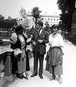 Moissi gab 1918 ein Gastspiel in der Neuen Wiener Bühne u. a. mit Die Räuber, in denen er den Franz Moor spielte, und Hamlet, in dem Elisabeth Bergner die Ophelia gab. Für die Dauer des Gastspiels war auch Alexander Granach engagiert.[4] Max Reinhardt besetzte Moissi 1920 als ersten Jedermann bei den Salzburger Festspielen. In dieser Rolle war er auch 1922 zu sehen und wiederum von 1926 bis 1931. Die Buhlschaft gab in den Jahren 1921 und 1922 seine Ehefrau Johanna Terwin.