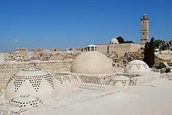 Die bekannteste Moschee ist die große Umayyaden-Moschee am nördlichen Rand des überdachten Suqs. Sie wurde von den Umayyaden begonnen; der erhaltene Bau des Zengiden Nur ad-Din stammt von 1158, die Rekonstruktion nach dem Mongolensturm von 1260. Die ursprüngliche Moschee bezog teilweise eine frühbyzantinische Kathedrale aus dem Ende des 5. Jahrhunderts in den Bau mit ein. Diese dürfte selbst auf einem älteren Tempel errichtet worden sein. Die Kirche war Helena geweiht, der Mutter Konstantins I. Hier lag der Überlieferung nach das Grab des Vaters Johannes des Täufers. Westlich angrenzend befindet sich die Madrasa al-Halawiya, eine von Nur ad-Din im 12. Jahrhundert gegründete islamische Hochschule. Die Holzschnitzereien des Mihrābs sind inschriftlich auf 1245 datiert. Ein Werk des osmanischen Architekten Sinan ist unter anderem die Adliye-Moschee.