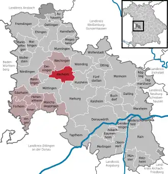 | Lage der Gemeinde Alerheim im Donau-Ries | ||