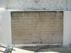 Der Grundstein wurde der Tradition folgend an der für den Altar vorgesehenen Stelle auf der Ostseite eingelassen. Die Kirche musste jedoch wegen der schlechten Beschaffenheit des Untergrundes einige Meter weiter östlich errichtet werden, so dass er heute unter dem Eingang auf der Westseite liegt.