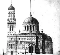 Der Naos der Alexander-Newski-Kathedrale besitzt nur eine einzige polygonale Kuppel und hat den Grundriss eines Quadrats mit abgeschrägten Ecken. Im Osten schließt sich eine halbkreisförmige Apsis an, die Nord- und Südfassade werden durch vorspringende Risalite aufgelockert, die die Seitenportale enthalten. Das Hauptportal befindet sich im Erdgeschoss des Glockenturms, der im Westen an die Kirchen angebaut ist. Er besteht aus drei sich nach oben hin verjüngenden Vollgeschossen, den Abschluss bildet eine ornamentierte und teilweise vergoldete Zwiebelhaube. Der gesamte Bau weist eine reiche, stark plastische Gliederung aus Gesimsen, Pilastern, Blendarkaturen und dekorativen Giebeln auf, wie sie für die russische Architektur des Historismus typisch ist.