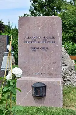 Alexander Giese war Mitarbeiter des ORF, Autor von Prosa, Lyrik, Film und Hörspiel. Von 1990 bis 1997 war er Präsident des Österreichischen P.E.N.-Clubs und 1975 bis 1986 Großmeister der Großloge von Österreich. 1982 wurde ein neonazistischer Anschlag auf ihn verübt.[3]