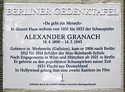 Alexander Granach starb am 14. März 1945 in New York nach einer Blinddarmoperation an einer Lungenembolie. Im selben Jahr erschien postum seine Autobiografie Da geht ein Mensch in einem schwedischen Exilverlag.