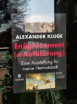 • 2024: Alexander Kluge – Enlightenment (=Aufklärung). Gleimhaus in Halberstadt, 15. Februar bis 20. Mai 2024.