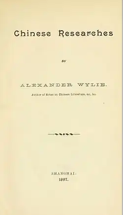 - Chinese Researches. Shanghai 1897 (mit einem Biographical Sketch of Alexander Wylie von Rev. James Thomas) Digitalisat