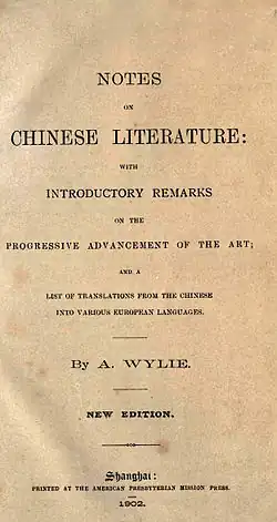- Notes on Chinese Literature. Shanghai 1867 Digitalisat; New ed. 1902 Digitalisat