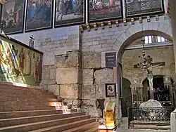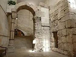 Es wurde eine Schwelle ausgegraben, die nach christlicher Tradition als die Schwelle verehrt wird, über die Christus auf dem Kreuzweg nach Golgotha ging. Archäologisch lässt sich diese Schwelle eher den Propyläen der konstantinischen Basilika zuordnen. Links von der Schwelle befinden sich eine Ante und daneben ein kleines Loch, das als Nadelöhr bezeichnet werden könnte. Durch dieses Loch konnten Reisende die Stadt betreten, nachdem nachts die Tore geschlossen wurden. Es gibt eine Hypothese, die die Bibelstelle: