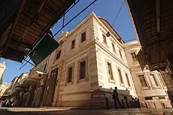 Auf dem originalen Plattenbelag steht eine antike Toranlage. Louis-Hugues Vincent rekonstruierte aus diesem erhaltenen Rest ein dreitoriges Triumph- oder Forum-Tor aus der Zeit Hadrians. Außerdem sind Teile der Süd- und der Ostmauer des Tenemos, Säulenstümpfe des römischen Cardo Maximus und Kapitelle erhalten. Die Fortsetzung der hier gezeigten Mauern kann man im benachbarten Zalatimos-Laden im Suq Chan ez-Zeit sehen.