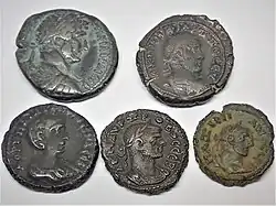 - ↑ Gisela Förschner: Die Münzen der römischen Kaiser in Alexandrien. (= Kleine Schriften des Historischen Museums Frankfurt am Main. Band 35). Melsungen 1987, S. 23 und 364.