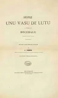 - Despre unu vas de lutu cu numele lui Decebal. Descoperitu La Blaine în Francia. Nota Ărcheologică. 1873