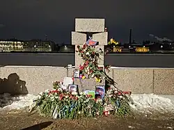Am 16. Februar 2024 meldeten russische Medien unter Berufung auf die Verwaltung des sibirischen Straflagers, in dem Nawalny zuletzt einsaß, dass er an diesem Tag gestorben sei. Nach Angaben der Gefängnisleitung hatte sich Nawalny am 16. Februar „nach einem Spaziergang unwohl“ gefühlt und „fast sofort das Bewusstsein verloren“. Es sei medizinisches Personal herbeigerufen worden, das jedoch nicht in der Lage gewesen sei, ihn wiederzubeleben.[271] Am Folgetag meldete Nawalnys Pressesprecherin Kira Jarmysch, dass Nawalnys Mutter, in der Strafkolonie, zu der sie gereist war und ihn am 14. Februar noch besucht hatte und ihn in völlig gesundem Zustand beschrieb, die Nachricht über den Tod ihres Sohnes erhalten habe. Jarmysch erklärte außerdem, dass Nawalny ermordet worden sei.[272][273] An seinem Todestag begann die Münchner Sicherheitskonferenz des Jahres 2024, an der seine Gattin als Gast teilnahm und wo sie auch vom Tod ihres Ehemannes erfuhr. Weder Nawalnys Verwandte noch sein Anwaltsteam hatten nach eigenen Angaben seinen Leichnam in den ersten Tagen nach dessen Tod sehen dürfen.[274] Zu den Umständen von Nawalnys Ableben gab es mehrere Widersprüchlichkeiten und andere Auffälligkeiten.[275][276] Am 19. Februar gab Nawalnys Anwaltsteam bekannt, dass russische Behörden ihnen und Nawalnys Verwandten mitgeteilt hätten, den Leichnam noch für zwei Wochen angeblich wegen „chemischer Untersuchungen“ einzubehalten.[277] Daraufhin klagte Nawalnys Mutter auf eine Herausgabe des Leichnams.[278] Dieser wurde ihr am 24. Februar übergeben.[279] Es hieß, Nawalnys Angehörige hätten auf eine unabhängige Untersuchung der Leiche, beispielsweise im Ausland, verzichtet.[280] Am 26. Februar äußerte der Direktor des Militärnachrichtendienstes der Ukraine (HUR), Kyrylo Budanow, in der Zeitung Kyiv Post die Vermutung, dass Nawalny an einem Blutgerinnsel verstorben sei. Laut Budanow sei dies „mehr oder weniger“ bestätigt.[281] Am 1. März 2024 wurde Nawalny auf dem Friedhof Borisov bzw. Borissowskoje im Moskauer Bezirk Marjino beigesetzt.[282] Nach Angaben von Nawalnys Stiftung für Korruptionsbekämpfung standen die Regierungen von Deutschland und den USA im Februar 2024, wenige Tage vor Nawalnys Tod, in Verhandlungen mit der Regierung Russlands über einen Häftlingsaustausch, bei dem Wadim Krassikow nach Russland überstellt werden sollte und Nawalny im Gegenzug in ein westliches Land überstellt werden sollte.[283] Am letzten Wahltag der russischen Präsidentschaftswahl im März 2024 bestätigte Putin auf Nachfrage, dass ein Gefangenenaustausch möglich gewesen wäre. Putin behauptete, er habe bereits sein Einverständnis zum Austausch Nawalnys gegen im Westen inhaftierte Russen gegeben und ergänzte: „aber leider geschah, was geschah“.[284][285] Im August 2024, nach einem großen Gefangenenaustausch zwischen Russland und dem Westen bestätigte Jake Sullivan (Sicherheitsberater von US-Präsident Joe Biden), dass zu Lebzeiten von Nawalny auch eine Freilassung von Nawalny beabsichtigt und darüber verhandelt worden war.[286]