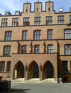 Die direkt an der Straße platzierten weiteren Ergänzungsbauten aus den Jahren 1881–1905 sind viergeschossig und ebenfalls mit Klinkern verblendet. Die Fassaden in historisierenden Formen sind inzwischen großflächig mit wildem Wein bewachsen.