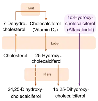 - ↑ a b c d Eintrag zu Alfacalcidol. In: Römpp Online. Georg Thieme Verlag, abgerufen am 6. April 2022.