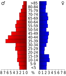 19,4 Prozent der Bevölkerung waren unter 18 Jahre alt, 6,4 Prozent zwischen 18 und 24, 28,7 Prozent zwischen 25 und 44, 25,2 Prozent zwischen 45 und 64 und 20,4 Prozent waren 65 Jahre oder älter. Das Durchschnittsalter betrug 42 Jahre. Auf 100 weibliche kamen statistisch 131,0 männliche Personen. Auf 100 Frauen im Alter von 18 Jahren oder darüber kamen 142,0 Männer.
