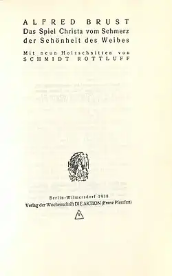- Das Spiel & Christa : vom Schmerz der Schönheit des Weibes von Alfred Brust, Karl Schmidt-Rottluff (Separatabdruck der ursprünglich in der Wochenschrift Die Aktion erschienenen Stücke) Digitalisat Wisconsin