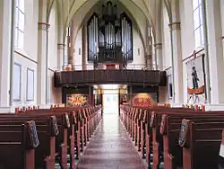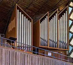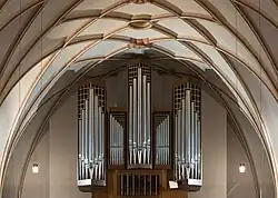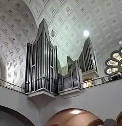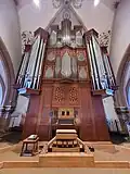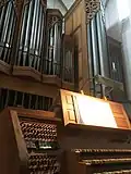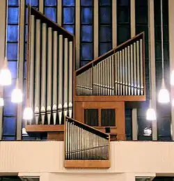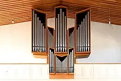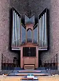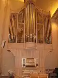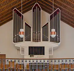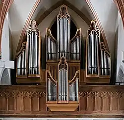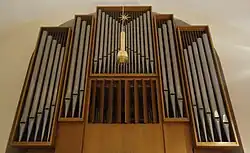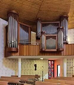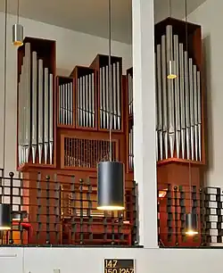 III/P | 47 | 1963 Vorgängerorgel verbrannt; 2006 Austausch zweier Register und Einbau eines Untersatz 32′ durch Bartelt Immer; heute III/P/48, Schwesterinstrument zur Orgel der Lutherkirche am Heidt in Wuppertal[12] |