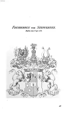 - ↑ Entgegen familienkundlichen Aufzeichnungen des Familiengenealogen Heribert Seyffertitz in Graz, in denen er Alfreds Vater noch als Reichsfreiherr nennt, wurde bereits im Dekret des niederländischen Königs Wilhelm III., in Personalunion Großherzogs von Luxemburg, vom 29. Februar 1872, mit welchem er Alfreds Vater die Naturalisation in Luxemburg verlieh, dieser schon nicht mehr mit dem Freiherrntitel genannt, sondern nur von „Hrn. [= Herrn] Johann Baptist von Seyffertitz“ wurde im Gesetz geschrieben bzw. in der zweiten Amtssprache Französisch statt des Baronstitels von „sieur [= Herr] Jean-Baptiste de Seyffertitz“.