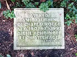 Im Bereich der Familiengrabstätte Jacques Henri de Chapeaurouge auf dem Friedhof Ohlsdorf im Planquadrat Q 25 nördlich Wasserturm befindet sich ein Kissenstein für Alfred Ami Dauphin de Chapeaurouge.