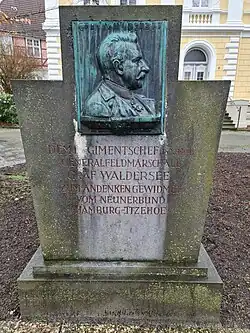 - Ein Gedenkstein für von Waldersee steht in Berlin-Zehlendorf in einem Park.