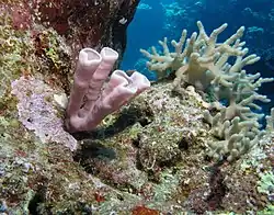 Algen abweidende Fische wie Riffbarsche, Papageifische und Doktorfische kommen oft an marinen Felsküsten und Riffen vor.[5] Mitunter kann eine lokal besonders intensive Beweidung mariner Algenbestände beobachtet werden.[6]