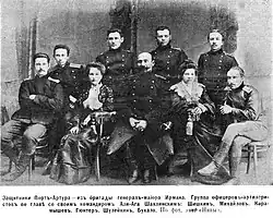 - ↑ Ларенко П. Н: Страдные дни Порт-Артура. Русско-японская война: Взгляд побежденных. Москва 2005, S. 411.