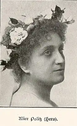 Alice Politz wurde 1867[1] in der österreichischen Landeshauptstadt Wien geboren. Nach dem Schulbesuch studierte sie Schauspielunterricht am Wiener Konservatorium. Im Jahre 1886 erhielt sie ihre erste Anstellung als Schauspielerin unter August Förster am Deutschen Theater in Berlin. Im darauffolgenden Jahr wechselte sie an das Stadttheater nach Leipzig. Ab 1890 war Alice Politz Mitglied des Königlichen Hoftheaters Dresden und trat im Königlichen Schauspielhaus vor allem als jugendliche Liebhaberin auf. Bekannt wurde sie vor allem durch ihre eindrucksvolle Darstellung des Gretchens in Goethes Faust, die sie von 1904 bis 1906 verkörperte. Ihre Nachfolgerin als Hofschauspielerin in Dresden wurde am 1. Juli 1907 Gertrud Tressnitz.
