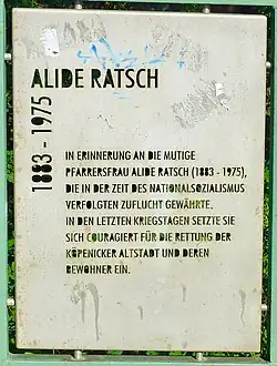 - ↑ a b Alide Ratsch. In: Antifaschistinnen aus Anstand. Abgerufen am 2. März 2024 (deutsch).