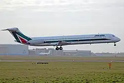 Ende 1959 gründete Alitalia die Società Aerea Mediterranea (SAM) als Tochtergesellschaft wieder. Die erstmals 1928 entstandene SAM war eine der Fluggesellschaften, aus der 1934 von der Regierung die Ala Littoria gebildet wurde. Der neuen SAM übertrug man von 1960 bis 1976 den Charterflug und bei Bedarf einige Inlandsverbindungen. In der Regel erhielt SAM ausrangiertes Fluggerät des Mutterunternehmens, moderneres nur zeitweise bei besonderem Bedarf.[17] Darüber hinaus gründete Alitalia mit ihrem Hauptaktionär IRI im Dezember 1963 die Tochtergesellschaft Aero Trasporti Italiani (ATI), die ab Juni 1964 mit einigen Fokker F-27 Inlandsflüge anbot, insbesondere in Süditalien. Bis zur Wiedereingliederung in Alitalia im Jahr 1994 übernahm ATI mit F-27, Douglas DC-9, McDonnell Douglas MD-80 und ATR 42 einen Großteil des Inlandsverkehrs, flog zuletzt aber auch einige Ziele im europäischen Ausland an. ATI bot im Inland nur reduzierte Serviceleistungen an, weswegen Kosten und Preise unter denen von Alitalia gehalten werden konnten. Auch hier kam es zwischen Mutter- und Tochterunternehmen zu bedarfsabhängigem Austausch, insbesondere bei den DC-9 und MD-80. Einige DC-9 gingen von 1981 bis 1985 an die kurzlebige Tochtergesellschaft Aermediterranea. Eine weitere Alitalia-Tochter, die auch (umgebaute) Maschinen der Muttergesellschaft nutzte, war Alitalia Cargo.[18]
