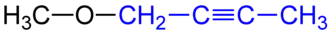 2-Butin-1-ylmethylether. Die 2-Butin-1-ylgruppe ist blau markiert. |