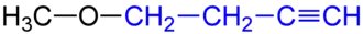 3-Butin-1-ylmethylether. Die 3-Butin-1-ylgruppe ist blau markiert. |