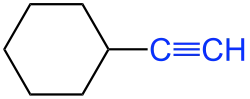 Ethinylgruppe in Ethinylcyclohexan. Die Ethinylgruppe ist blau markiert. |