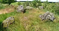 Die Reste dieses Galeriegrabes bestehen aus fünf Sandsteinblöcken mit einer maximalen Höhe von 1,0 m. 1887 gab es einen weiteren Block in Form einer rechteckigen Platte mit einer Höhe von etwa 1,5 m. 1953 wurde eine etwa zwei Meter hohe Quaderplatte entfernt und an den Calvaire von Sion-les-Mines verlegt. Es handelt sich um den am Kalvarienberg neben einem anderen versetzten Block errichteten Menhir.