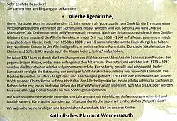 Die mehrmals renovierte Allerheiligenkirche ist eine Nebenkirche der Wernersreuther Pfarrei, in der von Mai bis Oktober vierzehntäglich Sonntagsgottesdienste abgehalten werden.