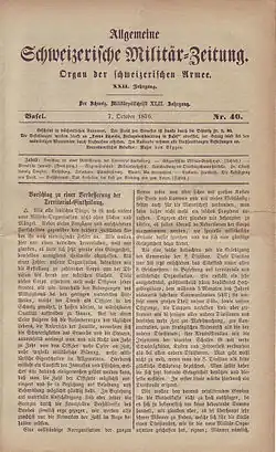 Ausgabe der Allgemeinen Schweizerischen Militär-Zeitung vom Oktober 1876
