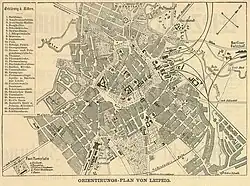 - ↑ Frauke Gränitz: Daten und Fakten zur Leipziger Stadtgeschichte (Quellen und Forschungen zur Geschichte der Stadt Leipzig 5). Leipziger Universitätsverlag, Leipzig 2013, ISBN 978-3-86583-721-9, S. 25.