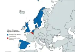 - Belgien: Der Republikanische Kreis (CRK), französisch Cercle républicain und niederländisch Republikeinse Kring, ist kein Mitglied der AERM mehr.[1]