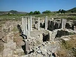 Ein weiteres markantes Gebäude ist ein Krankenhaus mit Innenhof und Kolonnaden, umgeben von miteinander verbundenen Behandlungszimmern. Alle Räume haben einen individuellen Mosaikboden und einen Zugang zum Säulenhof, in dessen Mitte einst ein Brunnen lag. Erkenntlich wurde der Gebäudezweck an den antiken medizinischen Instrumenten, eine Seltenheit in der Archäologie.
