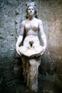 Verschiedene Baderäume waren durch einen langen unterirdischen Wassertunnel miteinander verbunden. Sie sind ungewöhnlich vollständig und gut erhalten, da große Teile der archäologischen Stätte durch Alluvialboden (Schwemmland) bedeckt waren. Ein weiterer Höhepunkt der Ausgrabungen war eine fast unversehrt gefundene, anderthalb Meter große Marmorstatue einer Quellnymphe, sie wird als Aphrodite gedeutet.