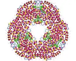 Allophycocyanin ist ein rotes biologisches Pigment, das an der Photosynthese der Cyanobakterien und Rotalgen beteiligt ist und gehört zu den Phycobilinproteinen.[1]