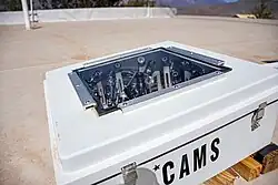Die Kameras verfügen über Fischaugenobjektive mit Öffnungswinkeln von etwa 180° und kleiner Blendenzahl.[3] Zusammen mit der notwendigen Elektronik befinden sie sich in einem wettergeschützten Gehäuse. Es können auch mehrere Kameras unterschiedlicher Ausrichtung eingesetzt werden. Durch zusätzliche Sensoren beispielsweise für Ultraviolett- oder Infrarotstrahlung können Bewölkung und Lichtverschmutzung (SkyQualityMeter - SQM) gemessen werden.[2] Um einen Betrieb auch unterhalb des Taupunktes zu ermöglichen, kommen häufig elektrische Heizungen zum Einsatz, die Optik und Schutzglas der Kamera vor Beschlag schützen.