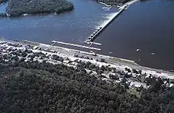 Zwischen Alma und dem gegenüberliegenden Ufer von Minnesota befindet sich mit Lock and Dam No. 4 eines von 28 Stauwerken und Schleusen, die die Schifffahrt am oberen Mississippi ermöglichen.
