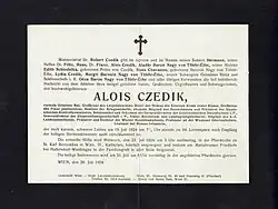 - ↑ Alois Czedik. Nachruf. In: Neue Freie Presse, 20. Juli 1924, S. 1 (online bei ANNO).