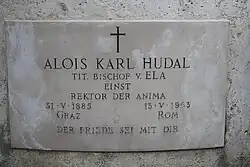 Er wurde auf dem Campo Santo Teutonico in Rom begraben, wo bereits seine Mutter Maria Hudal-Wieser beigesetzt worden war.[20]